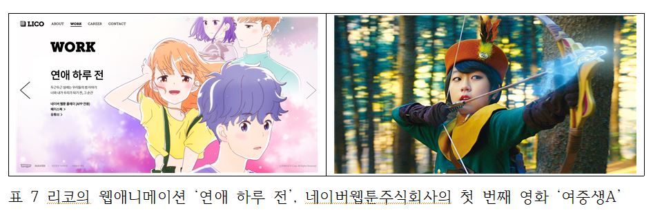 플레이리스트는 웹드라마 ‘연애플레이리스트’를 제작한데 이어 ‘에이틴’ ‘여고생’ 등의 웹드라마를 제작했다. 네이버웹툰은 이 중 ‘여고생’을 포토툰 형식으로 서비스하기도 했다. 리코는 PLAY툰 콘텐츠를 제작하는 디지털콘텐츠제작사이다. 네이버웹툰의 모바일앱에서 서비스되는 웹툰 원작 애니메이션을 제작하는 회사로 알려졌다. 그런데 이 회사는 ‘귀전구담’ ‘열대어’ 등의 자체 제작 웹툰을 네이버웹툰, 라인웹툰(네이버웹툰의 영어/중국어/태국어/인도네시아어 서비스), XOY(네이버웹툰의 일본어 서비스)에 제공하고 있고 오리지널 웹애니메이션 ‘연애하루전’을 제작하기도 했다. 네이버웹툰주식회사가 IP를 보유하는 스튜디오 창작 시스템을 도입한 것으로 볼 수 있다. 스튜디오N은 브릿지 컴퍼니로 규정했다. 네이버웹툰의 기존 IP를 영화나 드라마 제작자와 연결해주는 역할에 충실하되 경우에 따라서 기획제작, 투자배급 등의 역할도 한다. 2018년 8월, 네이버웹툰주식회사는 영화사 울림과 함께 웹툰 원작 영화 ‘여중생A’를 공동 제작해 공개했다. 네이버웹툰의 행보는 경쟁 구도를 취하고 있는 카카오와의 협력으로도 이어지고 있다. 웹툰 IP를 활용한 게임의 제작과 유통은 물론이고 자체 제작 웹툰을 도전만화를 통해 선 공개 한 후, 기존 원칙에 따라 베스트도전을 거쳐 정식 연재로 승급되지 못하면 카카오페이지 등을 통해서 유통한다는 계획이다.