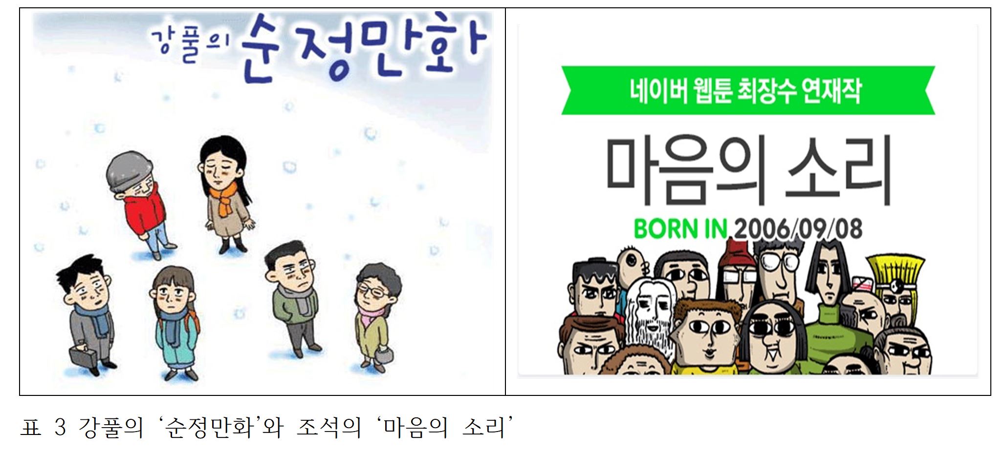 20세기 말, 한국 만화는 빠르게 디지털화 됐다. 매체의 디지털화가 이뤄지면서 기존의 출판만화를 디지털 방식(CD롬, 인터넷만화)으로 볼 수 있도록 했다면 신문과 잡지를 중심으로 디지털 화 된 만화창작도구(멀티미디어PC, 포토샵)를 활용한 작품이 등장하기 시작했다. 검색서비스나 메일서비스, 커뮤니티서비스 등을 중심으로 한 포털사이트는 전통적인 오프라인 콘텐츠를 인터넷에서 활용할 수 있도록 전환하기 위해 노력했고 오프라인에 없는 인터넷 콘텐츠를 만드는데 집중했다. 2003년 웹툰의 등장을 알린 다음의 만화속세상 서비스는 그 같은 맥락 아래 탄생했다. 다음 만화속세상은 전통적인 신문과 잡지를 통해 색다른 활동력을 보여주고 있는 작가, 인터넷 홈페이지나 카페에서 색다른 만화를 공개하고 있는 작가를 섭외했다. 2004년 오픈한 네이버 만화 역시 마찬가지였다. 차이점도 명확했다. 다음이 일상의 공감에 무게를 둔 작품 편성으로 20대 사용자층을 형성했다면 네이버는 일상의 폭소를 내세운 작품 편성으로 10대 사용자층을 유입시켰다. 1980년대 극화 붐 시대의 독자층, 1990년 대 코믹 붐 시대의 독자층과는 거리가 있었다. 새로운 도구, 새로운 매체, 새로운 작가, 새로운 독자가 새로운 만화 생태계를 만들었고 새로운 경쟁의 규칙이 만들어지면서 지금의 웹툰문화와 산업이 구축됐다.