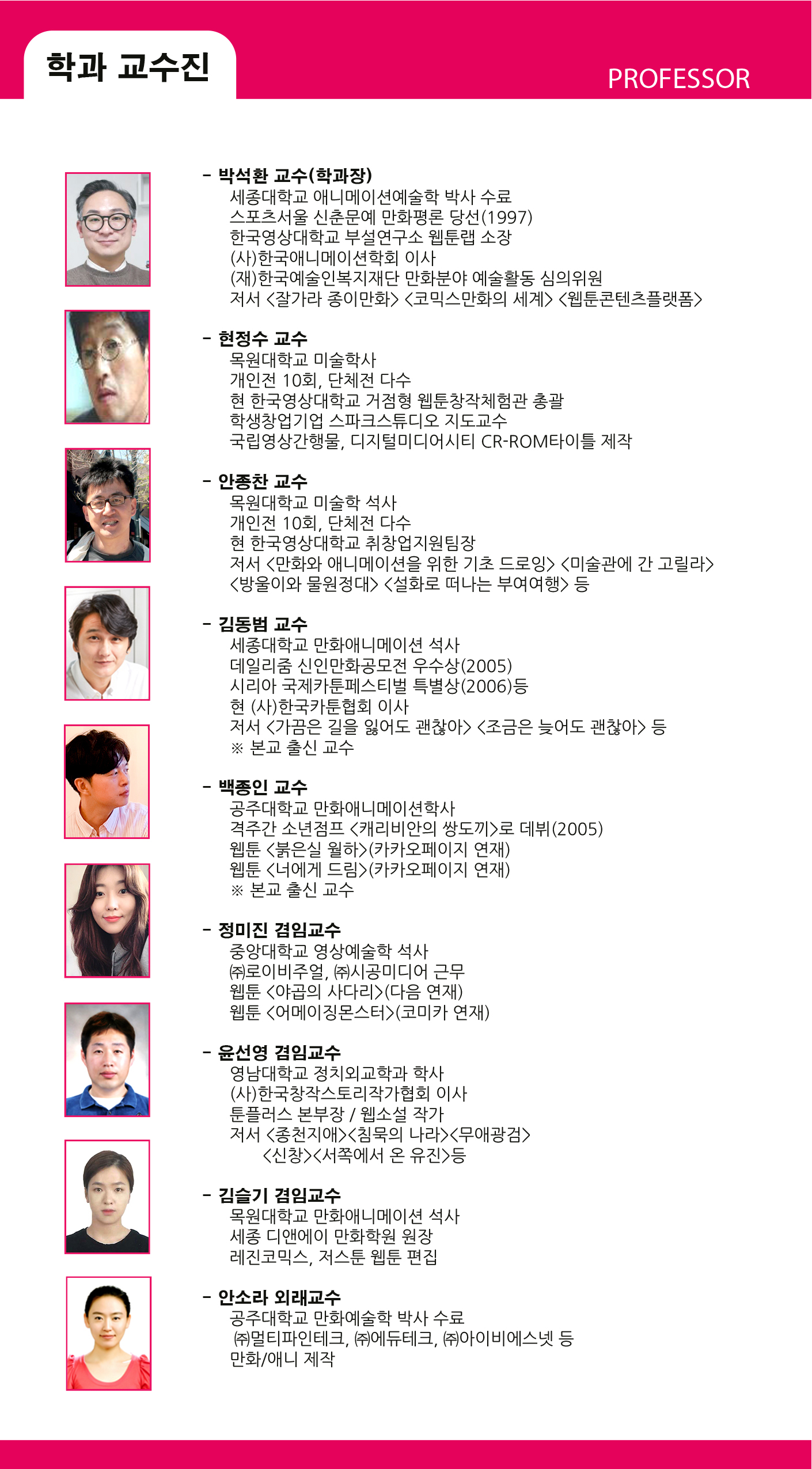 안녕하십니까. 한국영상대 만화콘텐츠과 학과장 박석환입니다.