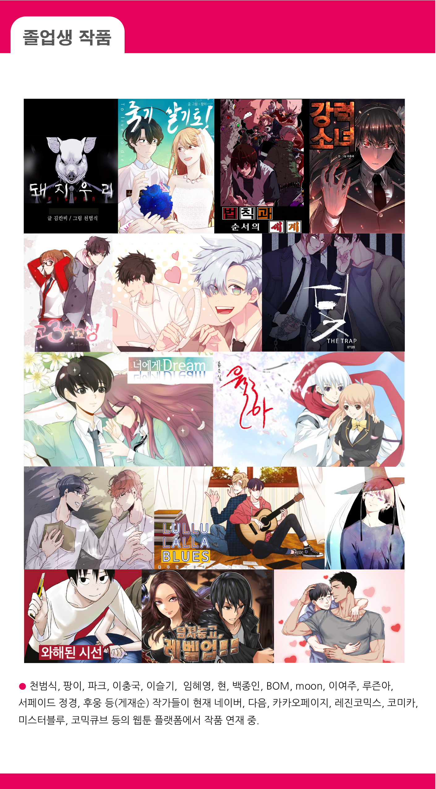 한국영상대학교 만화콘텐츠과 대표 강의 카페(제작과정 및 결과공유, 산업체평가 및 리쿠르트)