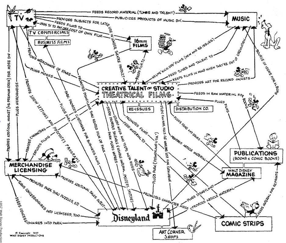 현재 월트디즈니컴퍼니는 세계 최대 규모의 거대 미디어기업이다. 2018년 기준 시가총액은 2,549억 달러로 포브스가 선정한 세계기업순위 48위에 올라 있다. 애니메이션 제작 스튜디오로 출발했지만 출판, 영화, 음악, 비디오게임, 놀이공원, 지상파방송, 케이블TV, 라디오, 인터넷서비스 등을 총 망라한 종합 엔터테인먼트 기업이다. 디즈니는 꿈, 모험, 도전, 우정, 사랑, 영웅 등 인류에게 필요한 전통적이고 보편적인 가치를 케케묵은 옛날이야기에서 찾아내고 이를 시대의 변화에 맞춰 조금씩 변주해 당대 최고의 기술과 시청각적 충격을 줄 수 있는 매체에 실어서 언제 어디서나 즐길 수 있도록 하고 있다. 이를 위해 디즈니의 고유 아이템이 되어버린 유럽의 명작동화를 여전히 리메이크하고 있고 현대판 그리스로마신화라고 할 수 있는 마블코믹스를 인수해 히어로무비를 만들고 미국의 SF신화로 인식되고 있는 스타워즈 시리즈 등을 제작하고 있는 것이다. 물론, 전통적이고 보편적인 그 가치 위에는 인류가 계승하고 보존해야 할 전통적 문화와 역사, 유물과 유산도 함께 제시된다.