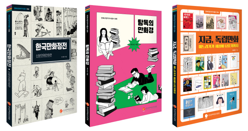 2014년 이후 5년 만에 새롭게 발간된 만화규장각 지식총서 시리즈는 ‘한국만화정전: 신문연재만화편, 박석환작’, ‘탐독의 만화경, 박수민작’, ‘지금, 독립만화, 성상민작’의 3종이다. ‘한국만화정전: 신문연재만화편’은 만화평론가이자 한국영상대학교 만화콘텐츠학과 박석환 교수가 1909년부터 1999년까지 한국의 시사만화와 신문연재만화를 통해 한국 근현대만화사를 한눈에 볼 수 있도록 담았다.