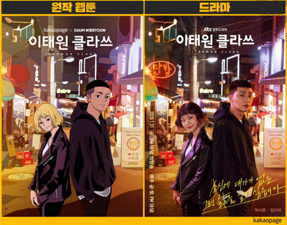 눈에 띄는 것은 두 가지였다. 하나는 TV드라마의 극본을 원작자가 직접 썼다는 점이다. 웹툰 <이태원 클라쓰>의 작가 광진이 TV드라마 <이태원 클라쓰>도 썼다. 또 하나는 카카오페이지의 광고이다. 드라마 방송 전후로 브랜드 광고를 실시했고 드라마 엔딩신에는 웹툰 구독을 독려하는 팝업 광고를 실시했다. 그리고 드라마가 클라이맥스로 치닫는 기간부터 ‘슈퍼웹툰프로젝트-2탄’이라는 타이틀로 광고를 집행했다. 윤태호 작가의 신작 <어린>이 다음웹툰과 카카오페이지에 게재된다는 내용의 티저 광고였다.