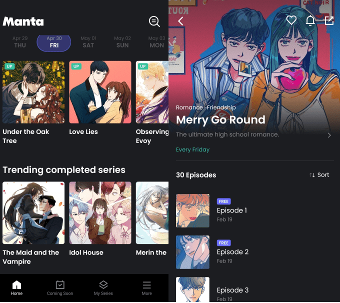 리디북스(이하 리디)가 북미에서 출시한 웹툰 구독서비스 ‘만타(Manta)’가 좋은 반응을 얻고 있다. 미국 구글 플레이스토어에서 앱 다운로드 1위에 오르고, 출시 4개월만에 다