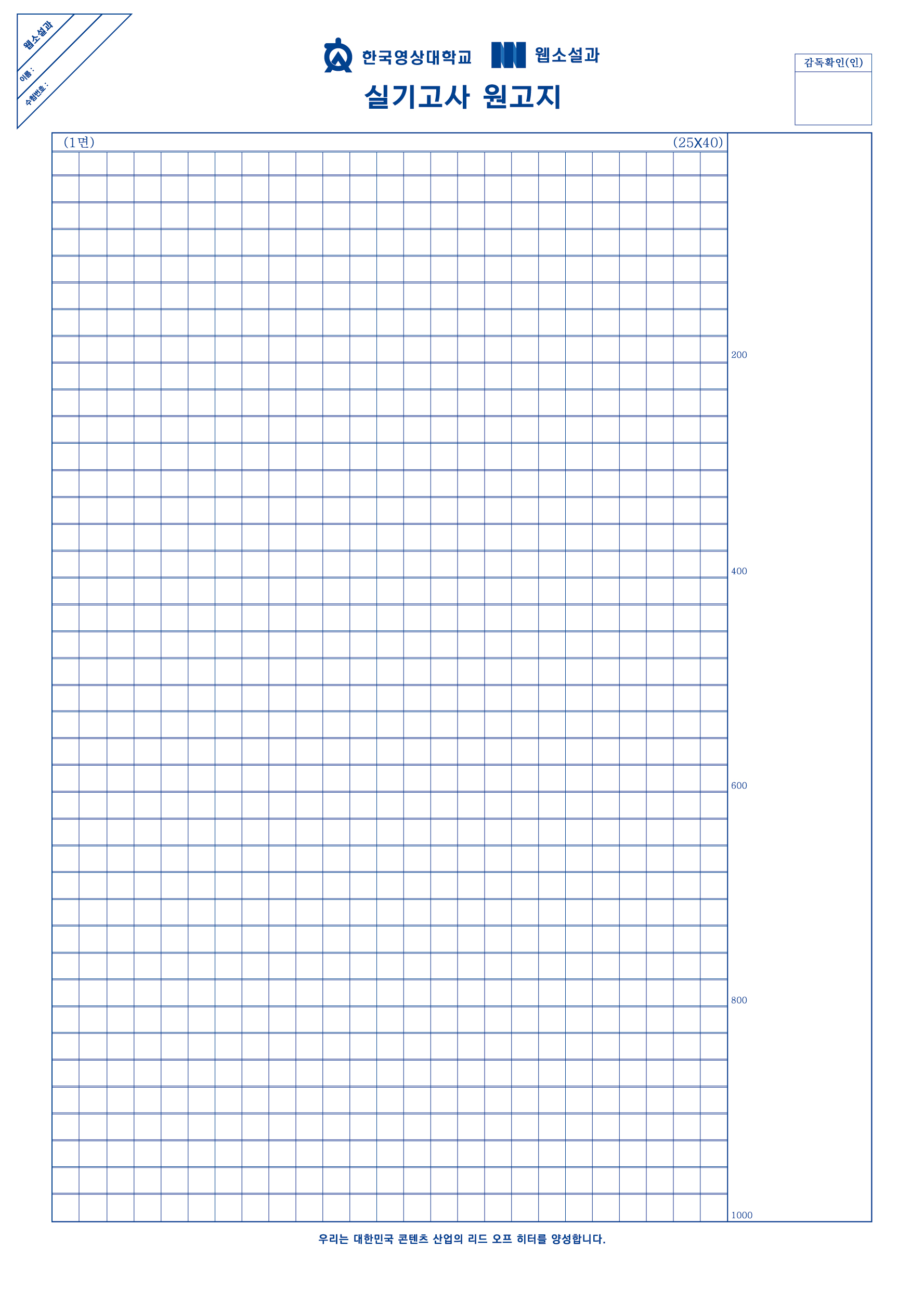 * 이것이 한국영상대 웹소설과 실기고사 원고지입니다.