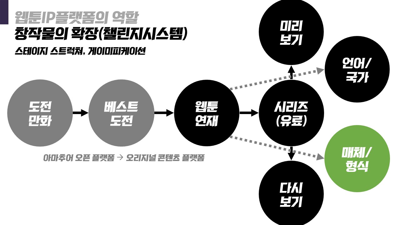 하지만 현재 웹툰아이피플랫폼 기업들은 이 단계에까지 와 있다고 볼 수는 없습니다.