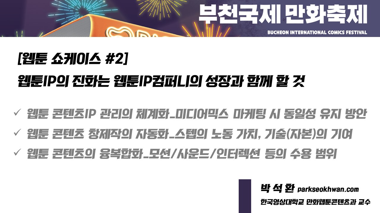 안녕하십니까. 제24회 부천국제만화축제 웹툰쇼케이스에서 인사드립니다.