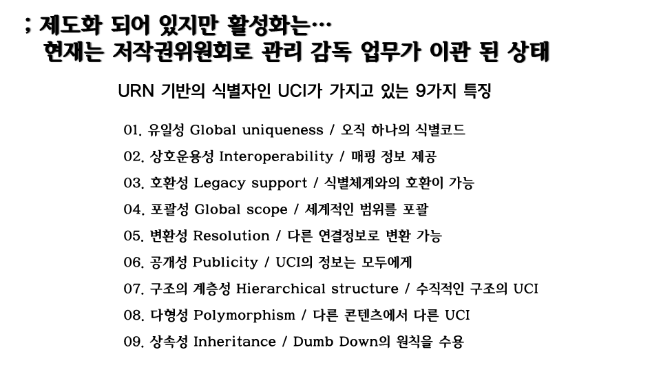 현재까지는 웹툰산업 고유의 식별체계가 필요하다는 정책적 의제를 도출 한 상황.