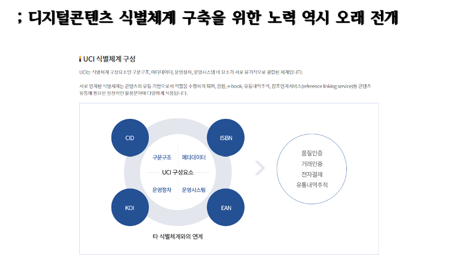 도서의 아이에스비엔에 대응할만한 것이 디지털콘텐츠 분야에서는 유씨아이.