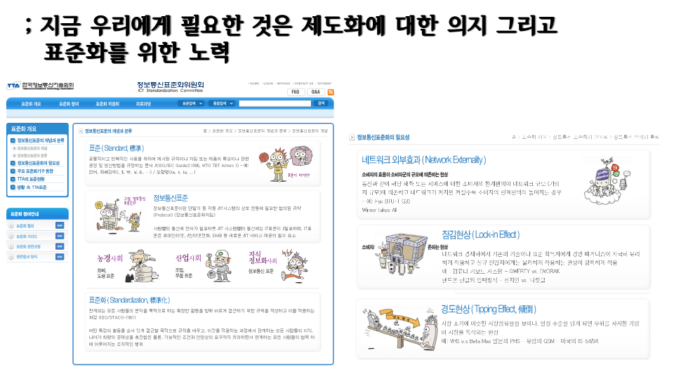 그림은 정보통신표준화위원회의 홈페이지와 표준화에 대한 설명 자료 임.