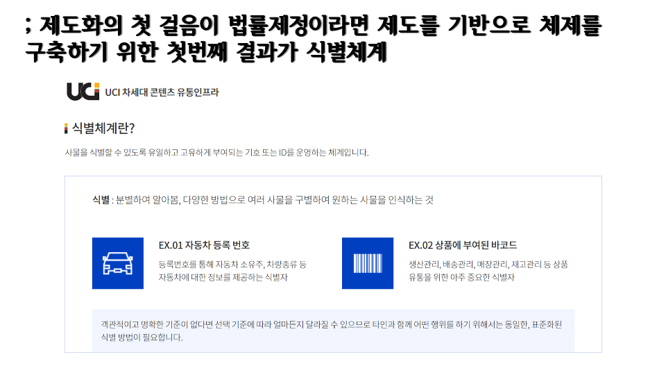 웹툰산업계에 필요하다고 하는 분류기준, 식별체계, 식별자 등은 모두 표준의 영역.