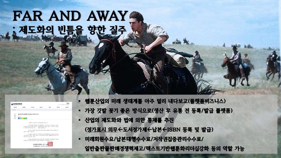 우여곡절이 없을 수 없겠으나 영화 유통에 대한 모든 정보가 오픈되고 축적되는 출판통합전산망, 웹툰통합전산망 같은 미래도 꿈꿔볼 수 있을 것.