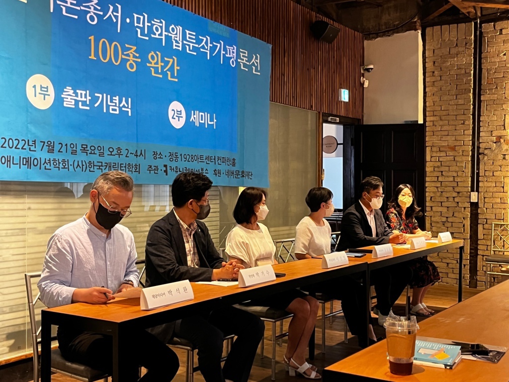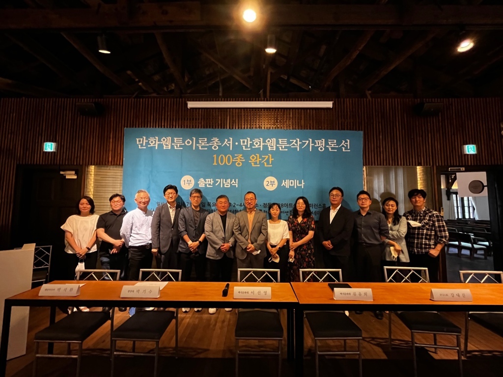 출판사 커뮤니케이션북스는 21일 서울 종로구 구세군중앙회관에서 만화웹툰이론총서·작가평론선 100종 완간 기념식 및 세미나를 개최했다.