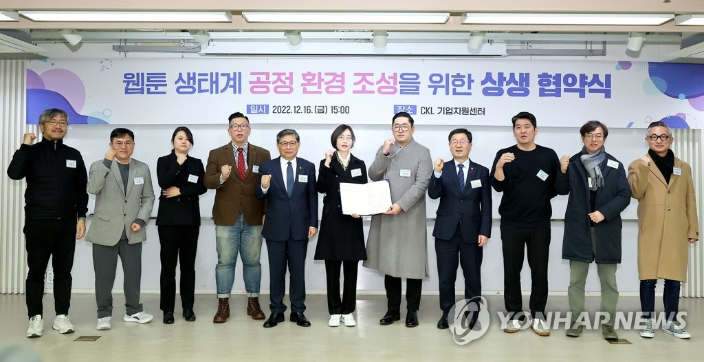(서울=연합뉴스) 김경윤 기자 = 웹툰 산업의 그늘로 꼽혔던 불투명한 수익 정보와 창작자의 열악한 노동환경 문제를 해소하기 위한 첫 단추가 채워...