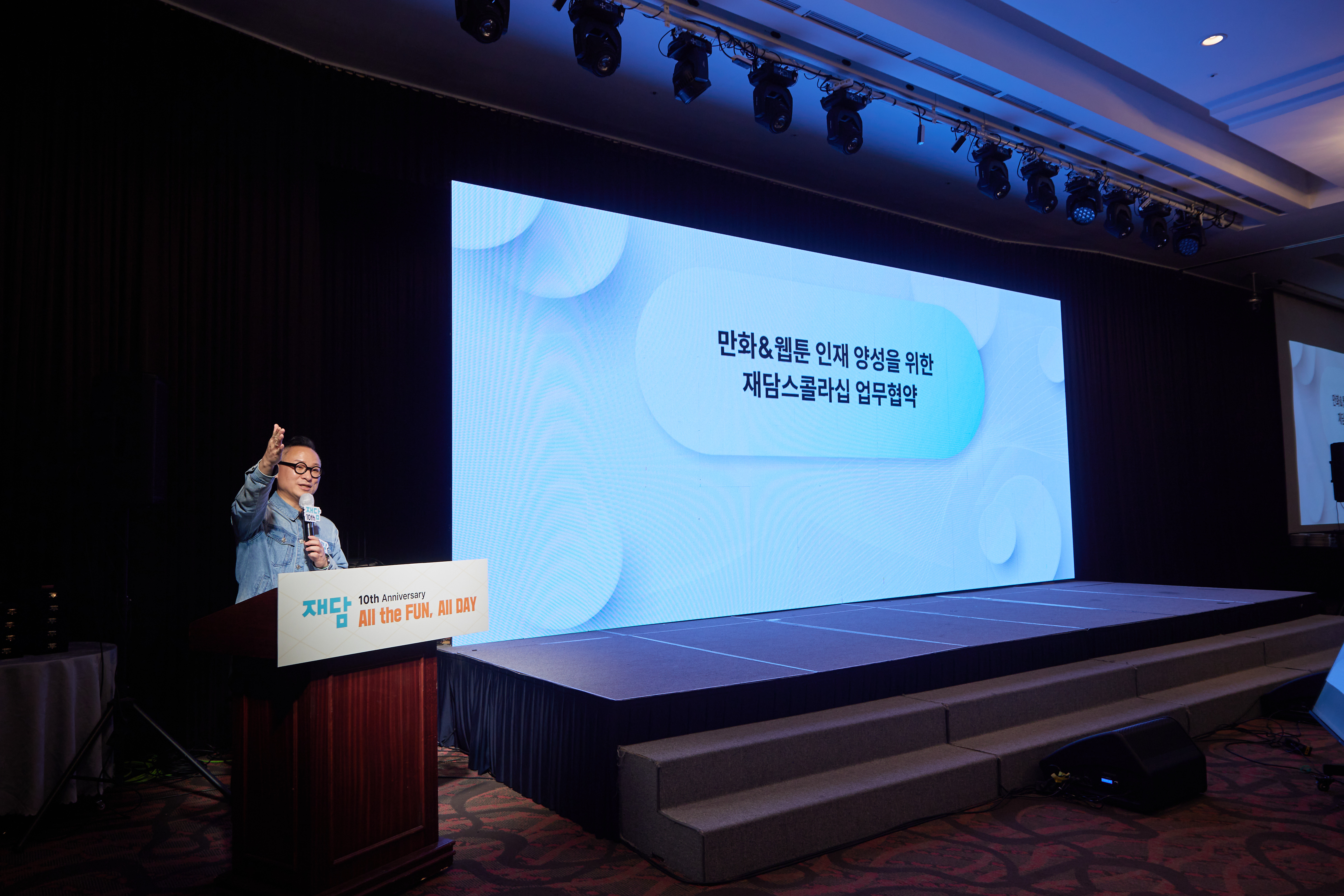 웹툰제작사인 재담미디어는 지난 3월 6일 서울가든호텔에서 열린 창사 10주년 기념식장에서 ‘재담스콜라십’ 운영 계획을 발표하고 총 5천5백만원의 장학금을 만화와 웹툰 관련 학과가 개설되어있는 대학에 기부하기로 했다.