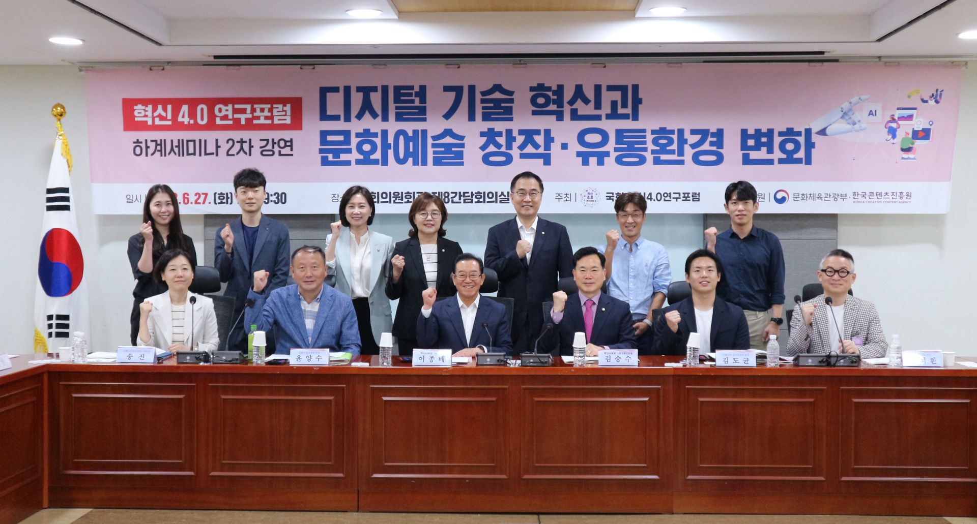 국회 혁신 4.0 연구포럼은 디지털 기술 혁신과 문화예술 창작·유통환경 변화를 주제로 열린 하계 세미나 2차 토론회가 성료됐다고 밝혔다.