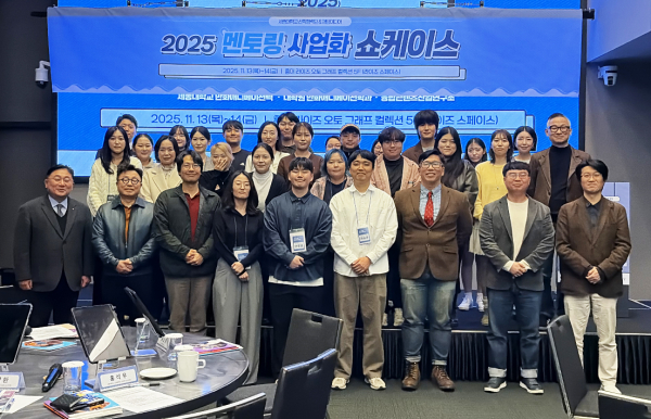 세종대학교(총장 엄종화) 산학협력단(단장 권현한)과 세종대 융합콘텐츠산업연구소가 지난 11월 13일(목)~14일(금) 한국콘텐츠진흥원(원장직무대행 유현석) 주관 2025 콘텐츠 창의인재동반사업 플랫폼 기관 자체 성과발표회 ’2025 멘토링+사업화 쇼케이스’를 성공적으로 마무리했다.