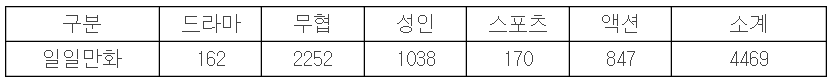 주목해야 할 지점은 지난해까지 코믹스, 도서류만화, 대본만화를 포괄한 만화단행본의 총량(2008년 기준 4,553종)보다 많은 량(2008년 기준 4,667종)을 발행했던 일일만화가 올 해는 만화단행본 총량보다 235종 적게 발행됐다는 점이다.