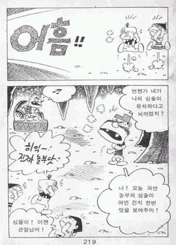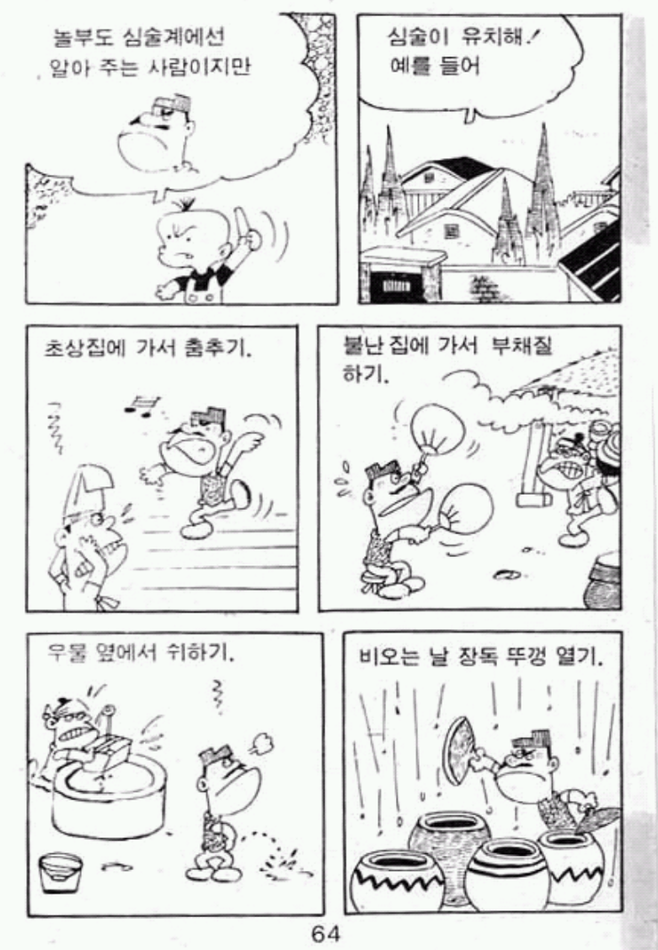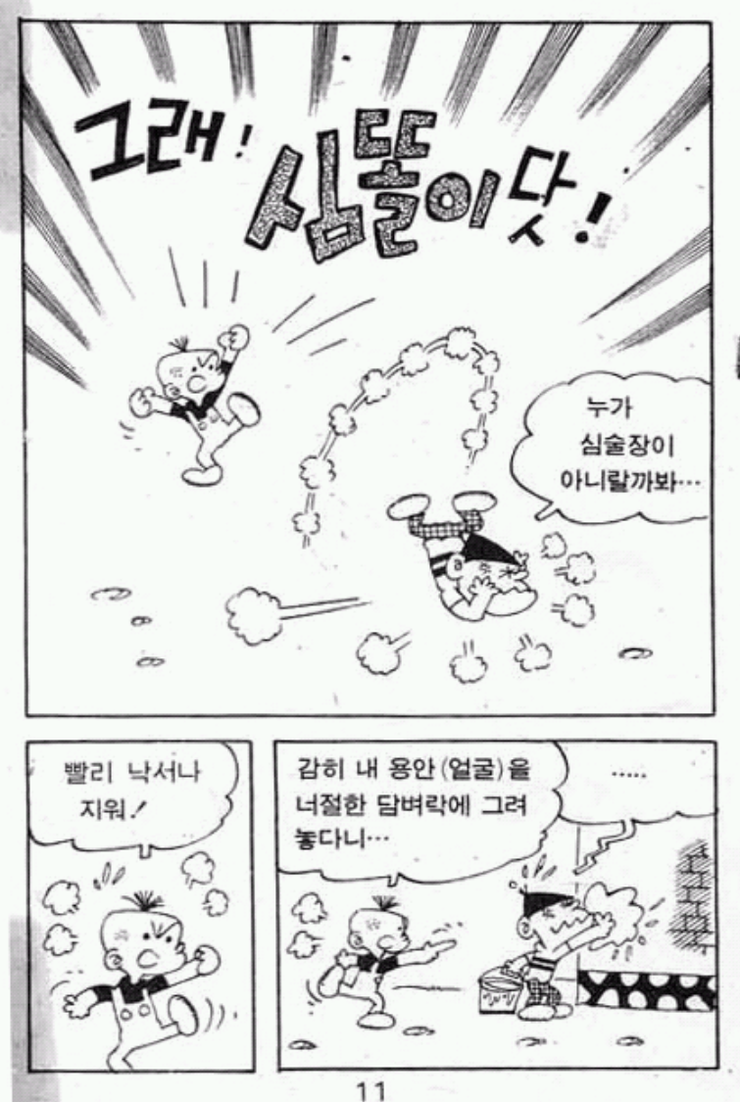 [그림 14, 15] 잘 못된 태도를 고쳐주기 위한 심똘이의 심술