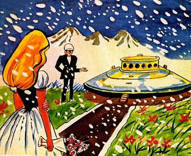 [그림 10] <007 우주에서 온 소년> 중 한복을 입고 지구를 떠나는 여왕