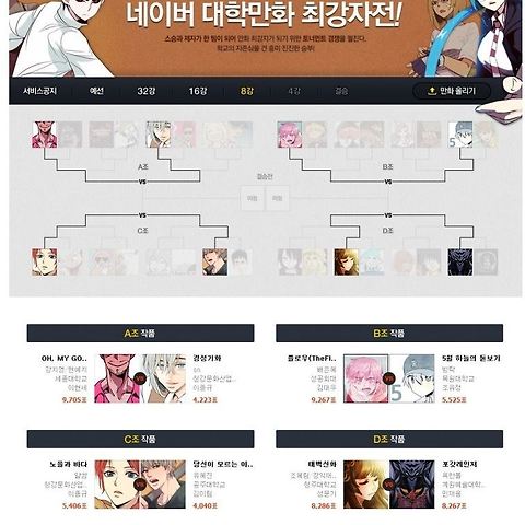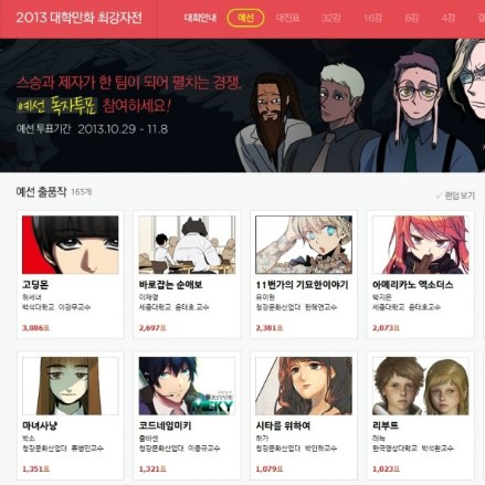 네이버와 한국만화영상진흥원이 공동으로 진행하는 2013 대학만화 최강자전의 예선 페이지가 오픈됐다.