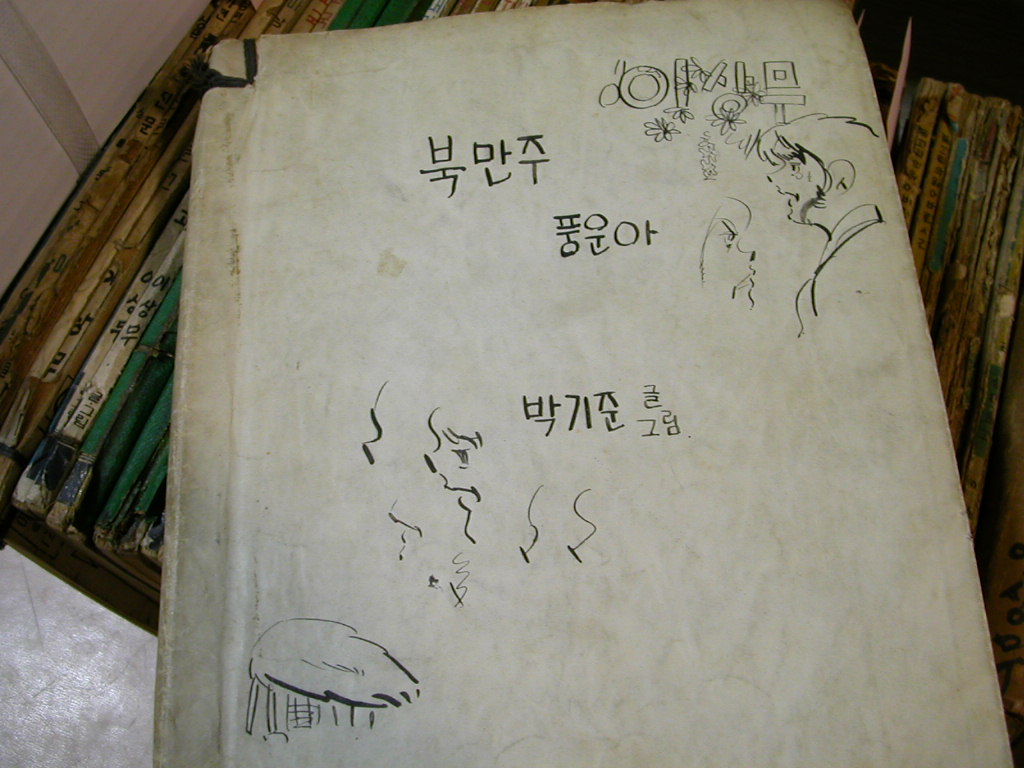 가칭 ‘이상무 만화 전작 디지털화 프로젝트’에 동의한 선생님은 개인적으로 소장하고 있던 본인명의의 만화책을 사과상자에 담아 보내주셨다. 상자에는 254작품 853권의 만화책이 담겨있었다. 세월의 독한 기운을 온 몸으로 받아들였을 책은 서있기 조차 힘겨운 노인 마냥 주저앉아 있었다. 가장 오래된 것은 스승인 박기준 선생님의 이름으로 신일문화사에서 1971년 발행한 <북만주 풍운아>였고 가장 최근 것은 2003년 프로야구협회의 주문으로 디지털싸이버에서 발행한 <독고탁의 이것이 야구다>였다.