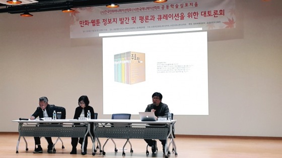 토론문과 관련해서는 뿌리깊은나무를 중심으로 김현과 오규원을 만화평론의 출발로 제시했는데 알고 계시겠지만 그 보다 앞선 1920년대에 시인 권구현(신문만화 단평)이나 만화가 최영수(만화문화론), 언론인 김동성(만화작법론)의 역할이 있었습니다. 저는 개인적으로 김동성에 대한 본격적인 연구가 필요하지 않을까 생각하고 있습니다. 그리고 당대에 만화평론가협회의 역할이 넓고 깊었지만 한국만화문화연구원에도 선수들이 여럿 있었습니다. 평론계에는 캐리커처의 역사를 쓴 박세현, 이바구별곡을 쓴 주재국, 한국만화비평의쟁점이라는 책을 쓴 김성훈, 네이버 세계만화정전의 필진으로 활동하고 있는 김경임 등. 학계에는 청강대의 김정영, 전주대의 조윤숙, 외대의 김기홍 등. 산업계에는 씨엔씨레볼루션의 이재식 대표, 재담미디어의 황남용 대표, 손봄의 김효석 대표 등이 한국만화인명사전, 만화가이드, 허영만평전, 이두호평전, 정욱평전, 계간만화, 엇지, 크리틱엠 등에 참여하며 저술과 집필 활동을 해왔고 현재도 하고 있습니다.