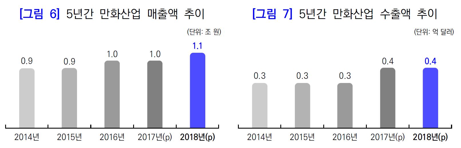 ○ 만화산업의 매출은 ’18년에 1.1조 원으로 예상