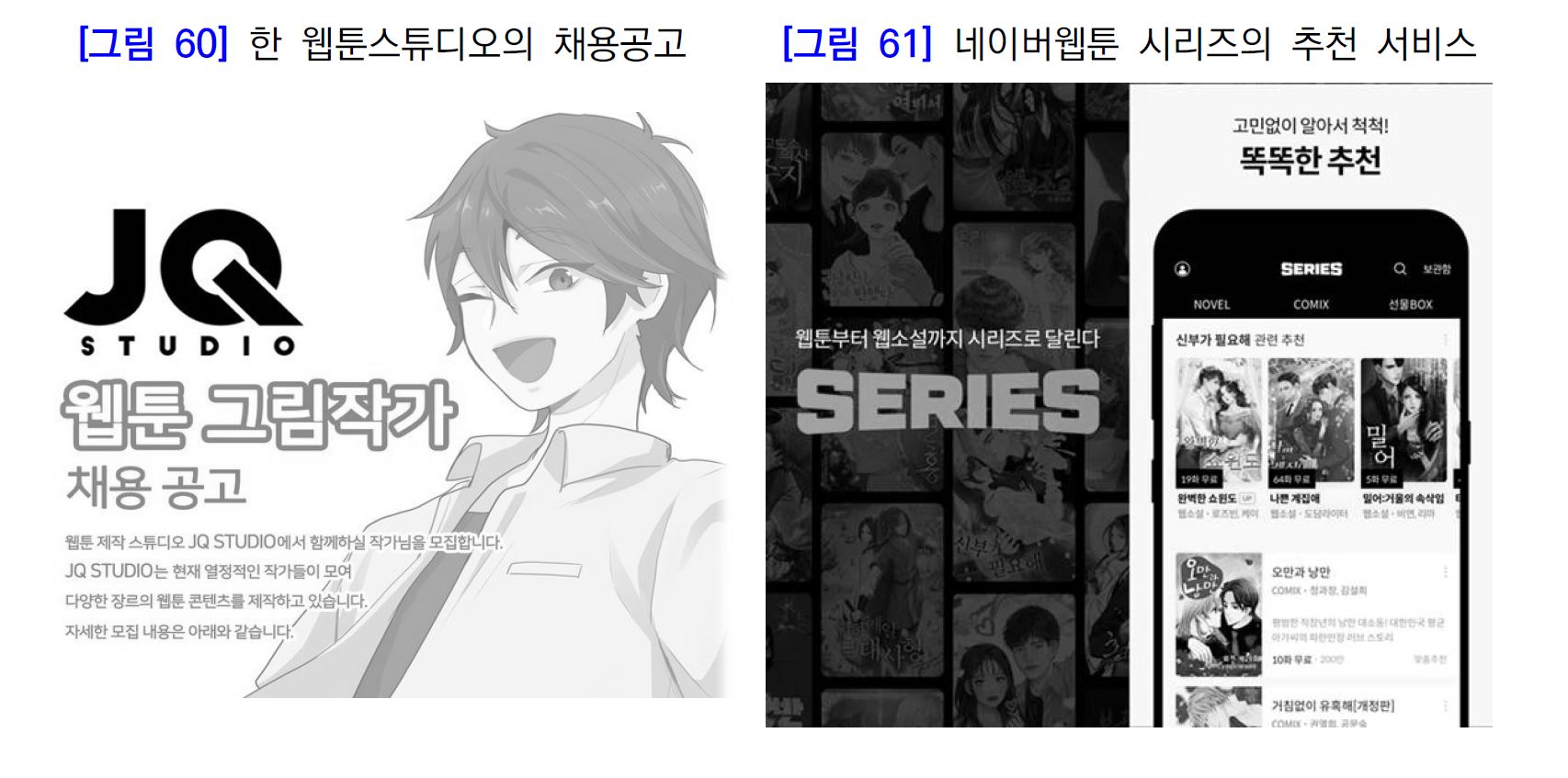 네이버웹툰의 웹툰기획개발사(제작사) 콘텐츠 유통 확대, 웹툰전문플랫폼 유료서비스 운영 방식 다양화로 사전 제작 웹툰 활성, 스튜디오 창작 시스템(스토리, 작화 작가를 중심으로 여러 명의 스탭이 참여하는 제작 방식) 일반화