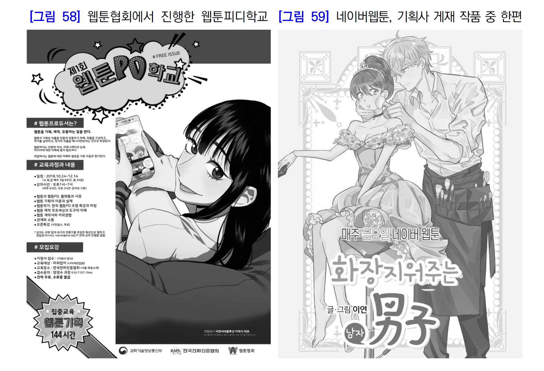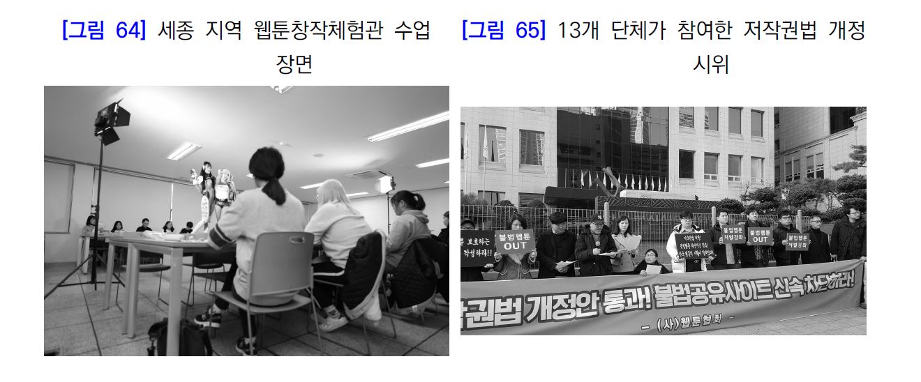 특히, 만화/웹툰 산업의 기반이라고 할 수 있는 예비창작자 교육, 창작자의 작업 안정성 확보와 복지 문제, 웹툰산업 관련 전문 인력(PD, 번역자, 마케터 등) 교육 등도 주요한 과제로 지목 될 듯