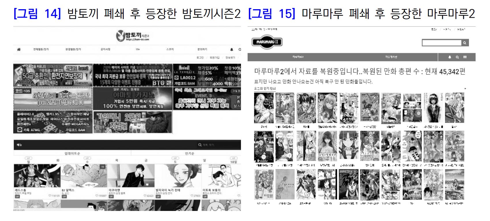 유료 웹툰 시장 확대와 함께 불법/불량 웹툰 서비스 우후죽순 격으로 등장
